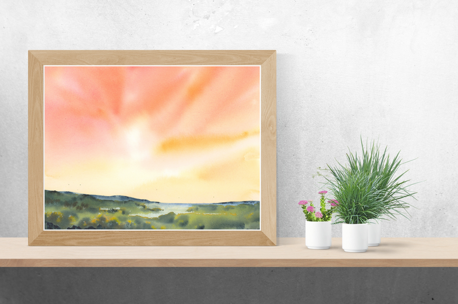 I hand-paint watercolor flowers and landscapes inspired by the deep wilderness of the Pacific Northwest, the forever plains and Great Lakes of the Midwest, and the big skies of the West.